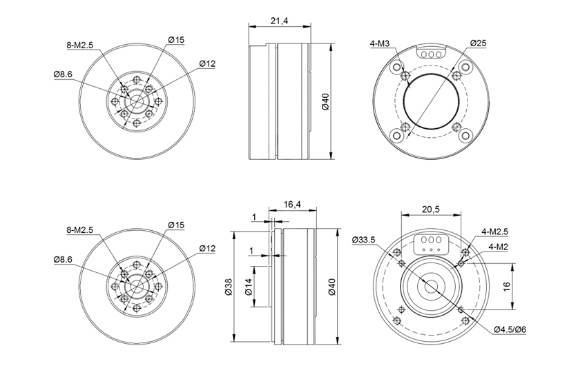 Stator Mounting Holes: Φ33.5mm, with 4 N2.5 threaded holes, making it easy to fix and integrate into various devices.