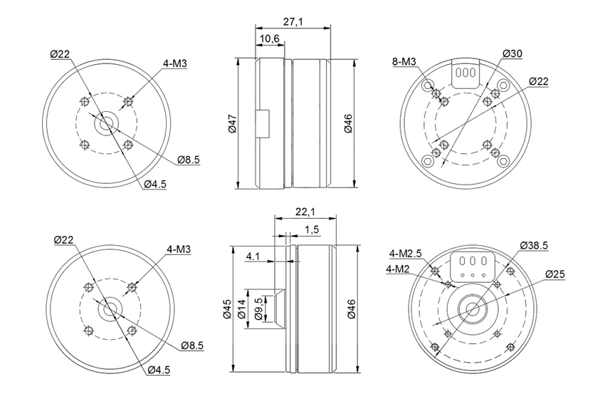 Rotor Mounting Holes: Φ22mm 4xM3