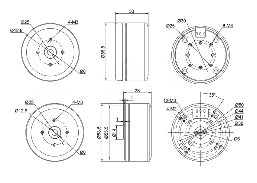 Rotor Mounting Hole: Φ25mm, with 4 M3 threaded holes to ensure a firm connection of the rotor components, improving the operation stability and precision of the motor.
