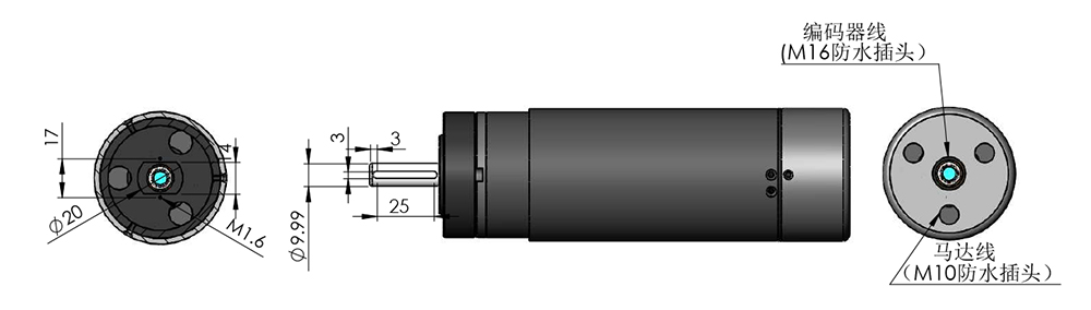 Electrical Connection: The encoder cable uses an M16 waterproof plug, and the motor cable uses an M10 waterproof plug to ensure stable and reliable connections.