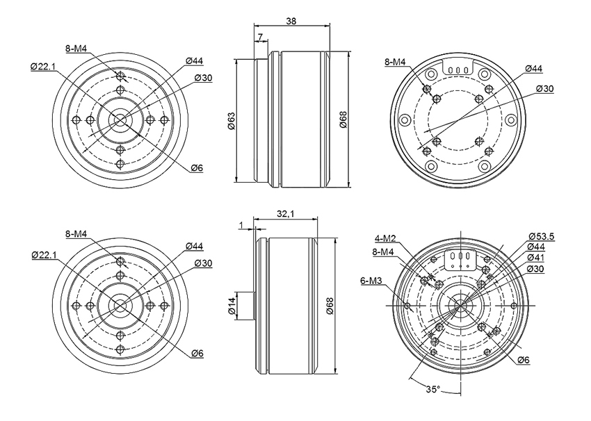 Multiple Mounting Options: Both the stator mounting holes and the rotor mounting holes offer multiple specifications, adapting to different mounting requirements and facilitating system integration.