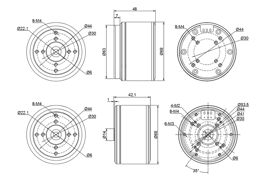 Rotor Mounting Holes: Two specifications are provided (Φ30mm 4xM4 and Φ44mm 4xM4) to adapt to different installation needs.