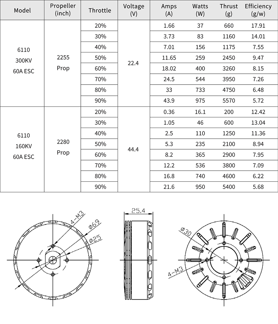 Rotor Mounting Holes: Φ25mm, 4 M3 threaded holes