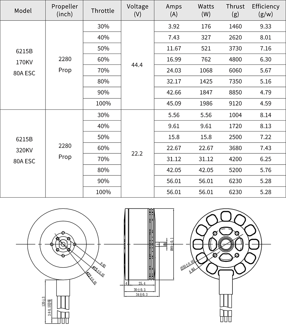 Rotor Mounting Holes: Φ15/22mm 4xM3, providing multiple installation options for easy matching with rotors of different sizes.