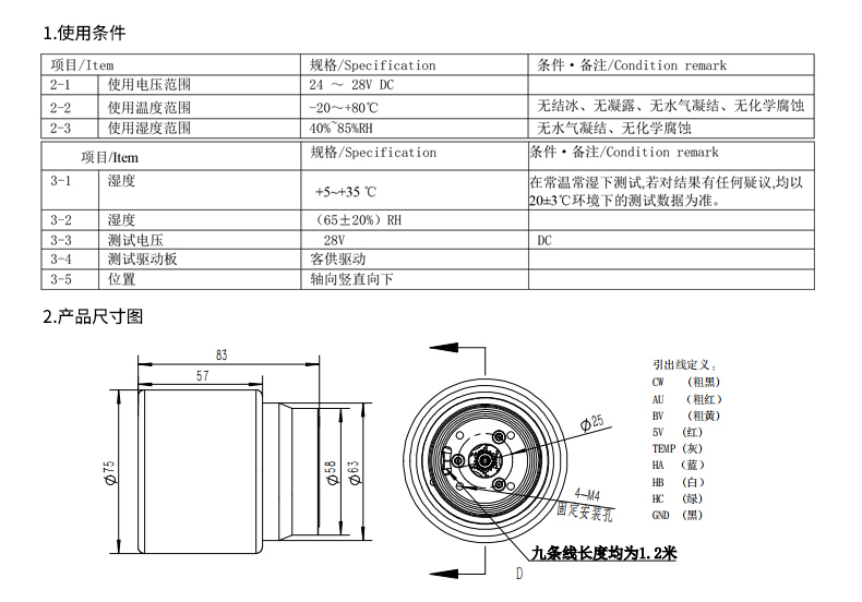 | 4-5 | Motor wire length | Refer to the dimension drawing | Please refer to the outline drawing of the motor for details. |