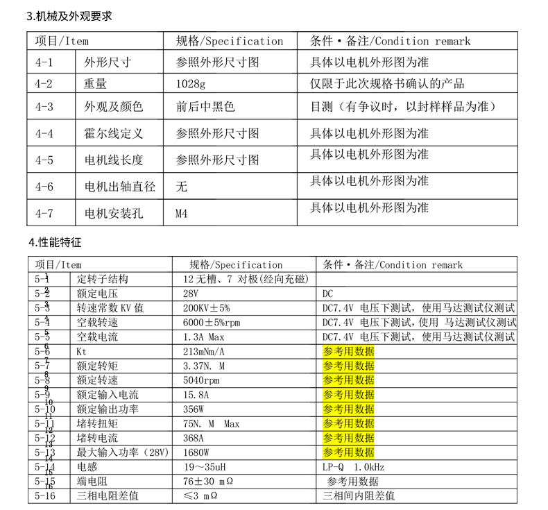 | 5-3 | KV value | 200KV±5% | Test under DC7.4V voltage, use a motor tester to test |