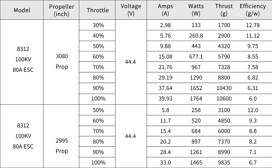 Thrust Range: Depending on the propeller size and throttle opening, the thrust can reach several kilograms.