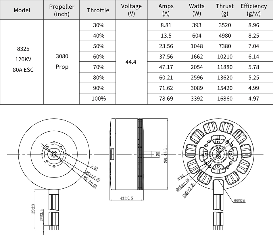 The 8325B Brushless motor for agriculture drone is a high – performance brushless DC motor, especially suitable for equipment that requires high efficiency and strong thrust. Whether it is a model aircraft, a multi – rotor drone, or other scenarios demanding powerful power, this motor can provide stable and strong power support. It can not only meet the demand for speed but also ensure long – term stable operation while guaranteeing efficiency. Whether users need flight control precision or higher power output, the 8325B Brushless motor for agriculture drone can achieve them well, making it suitable for various application scenarios that require high thrust and quick response.
