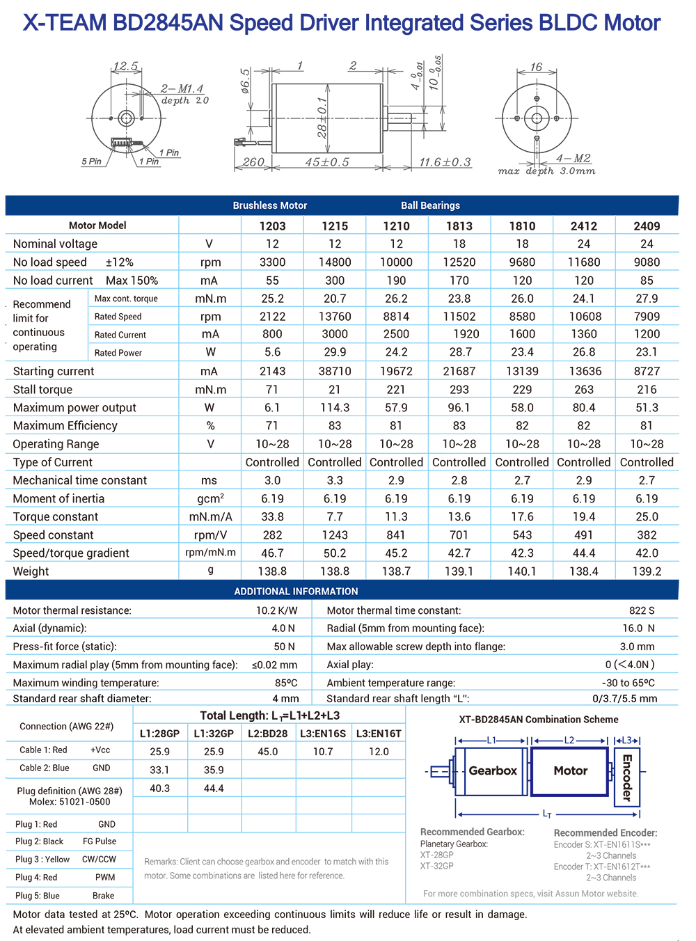 Diverse interfaces and accessories: This series of motors provides a variety of interface and accessory options, such as XT-BD2845AN combination solution, Molex 51021-0500 plug definition, etc. Users can choose the appropriate interface and accessories according to their actual needs to meet specific application requirements.