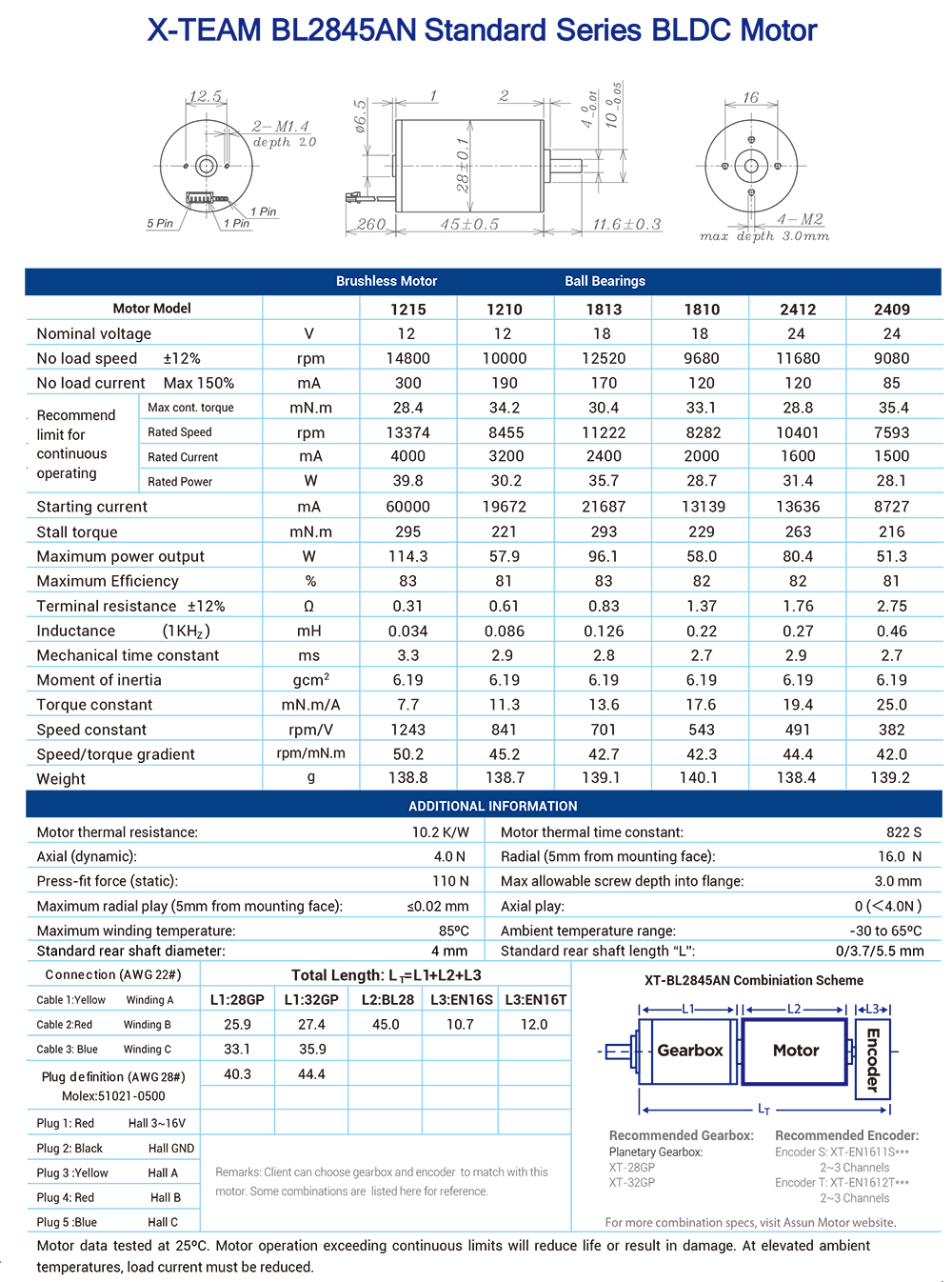 X-TEAM offers various models of the BL2845AN standard series coreless BLDC motor, including 1215, 1210, 1813, 1810, 2412, and 2409. There are slight differences in voltage, rotational speed, torque, etc., which can meet different application requirements.