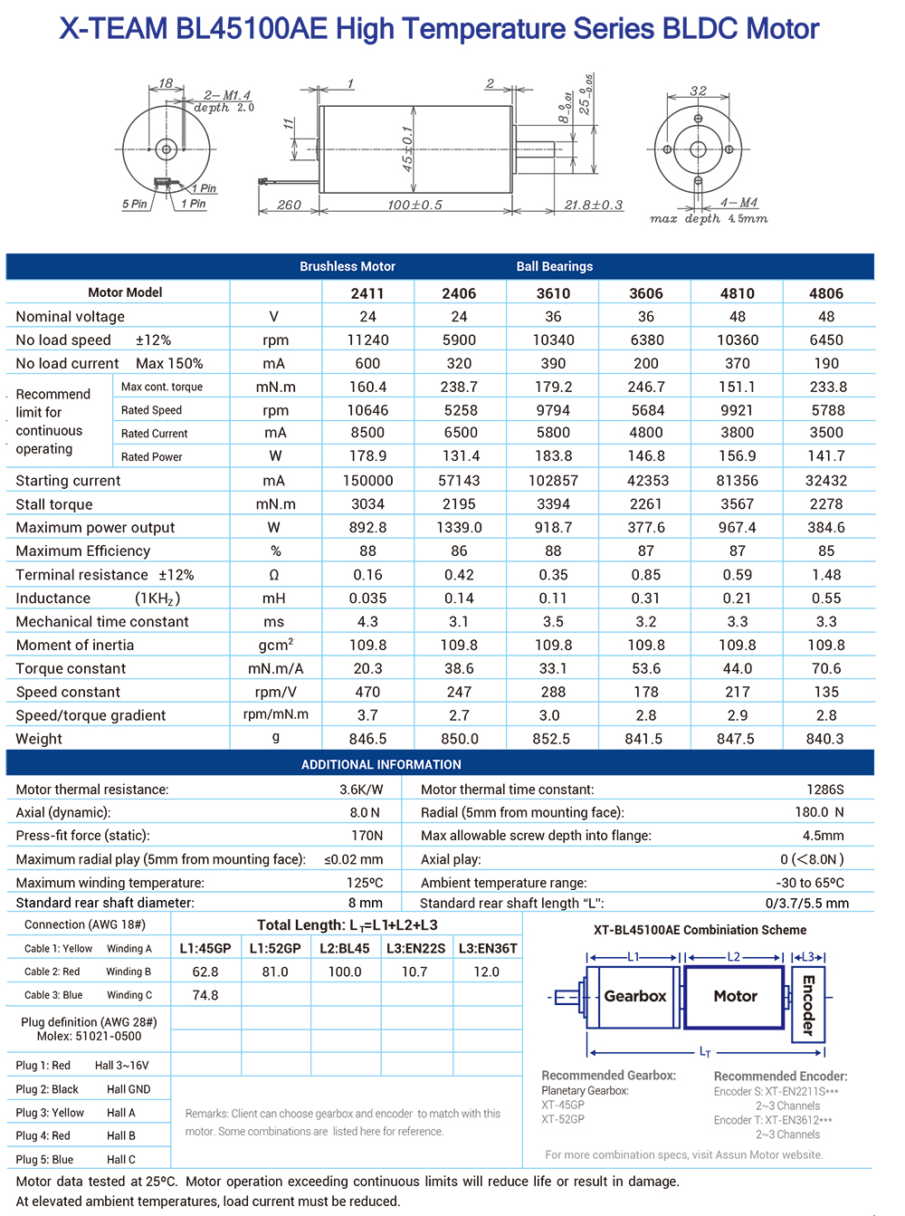 The BL45100AE high temperature series coreless BLDC motor is a high – performance motor carefully developed by X – TEAM for harsh industrial environments. This series of motors not only has all the advantages of traditional brushless DC motors, such as high efficiency, long service life, and low noise, but also specifically enhances its working ability in high – temperature environments, enabling it to maintain stable performance under extreme conditions.