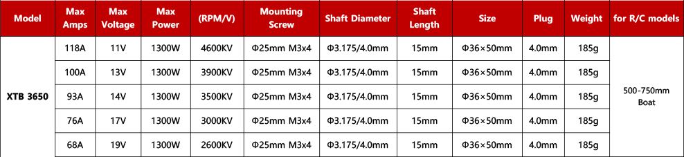 Weight and Dimensions: The motors are relatively light, weighing about 185g, and have moderate dimensions (e.g., Φ36×50mm), which makes them easy to install in various R/C models. Meanwhile, the standardized screw hole positions (Φ25mm M3x4) also facilitate users to install and remove the motors.