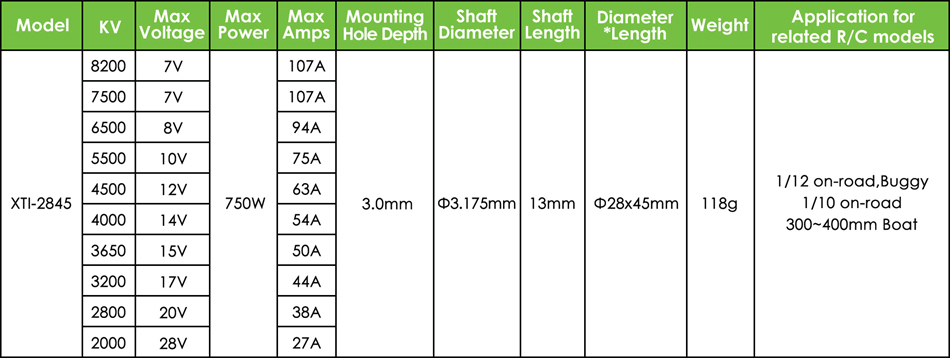The XTI-2845 Inrunner Brushless Motor for 1/12th R/C car is designed to meet the high-performance requirements of 390 to 1/12 or 1/10 scale remote control model vehicles. With its excellent performance parameters, advanced structural design, and wide application adaptability, the XTI-2845 Inrunner Brushless Motor for 1/12th R/C car has become the first choice for model enthusiasts and professional racers.