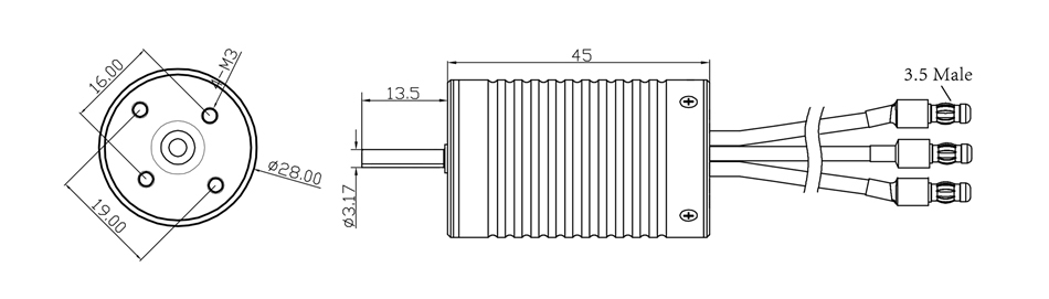 Motor size: Diameter 28 / Length 45mm