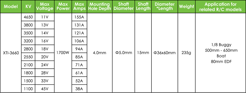 The XTI-3660 Inrunner Brushless Motor for 1/10th R/C car is a high-performance and high-speed brushless DC (BLDC) motor specifically designed for 1/8 racing off-road vehicles, 550-1/10 scale model cars, and 80mm electric ducted fans (EDF). The core advantages of the XTI-3660 Inrunner Brushless Motor for 1/10th R/C car lie in its high-speed characteristic of 4650KV, a peak power of 1700W, and a compact and lightweight structure, which can provide a strong power output in high-speed maneuvering and high-load scenarios.