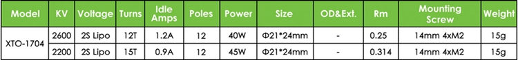 The XTO-17 motors are ideal for small electric airplanes up to 200g.Featuring a slotted 12-pole outrunner design. The curved Neodymagnets offer a perfect gap from the inside of the rotor for optimal power and efficiency.