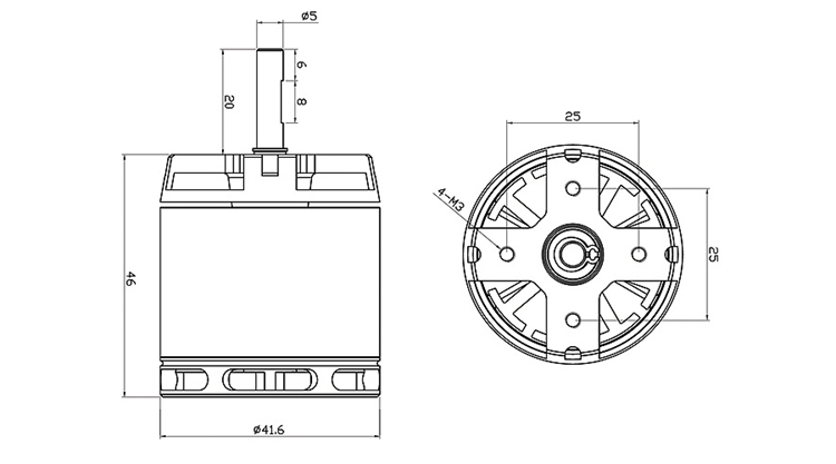 Lightweight and Compact Design: Weighing only 227g and with a size of Φ41.6×46mm, it is suitable for small and medium-sized models, taking into account both power output and space limitations.
