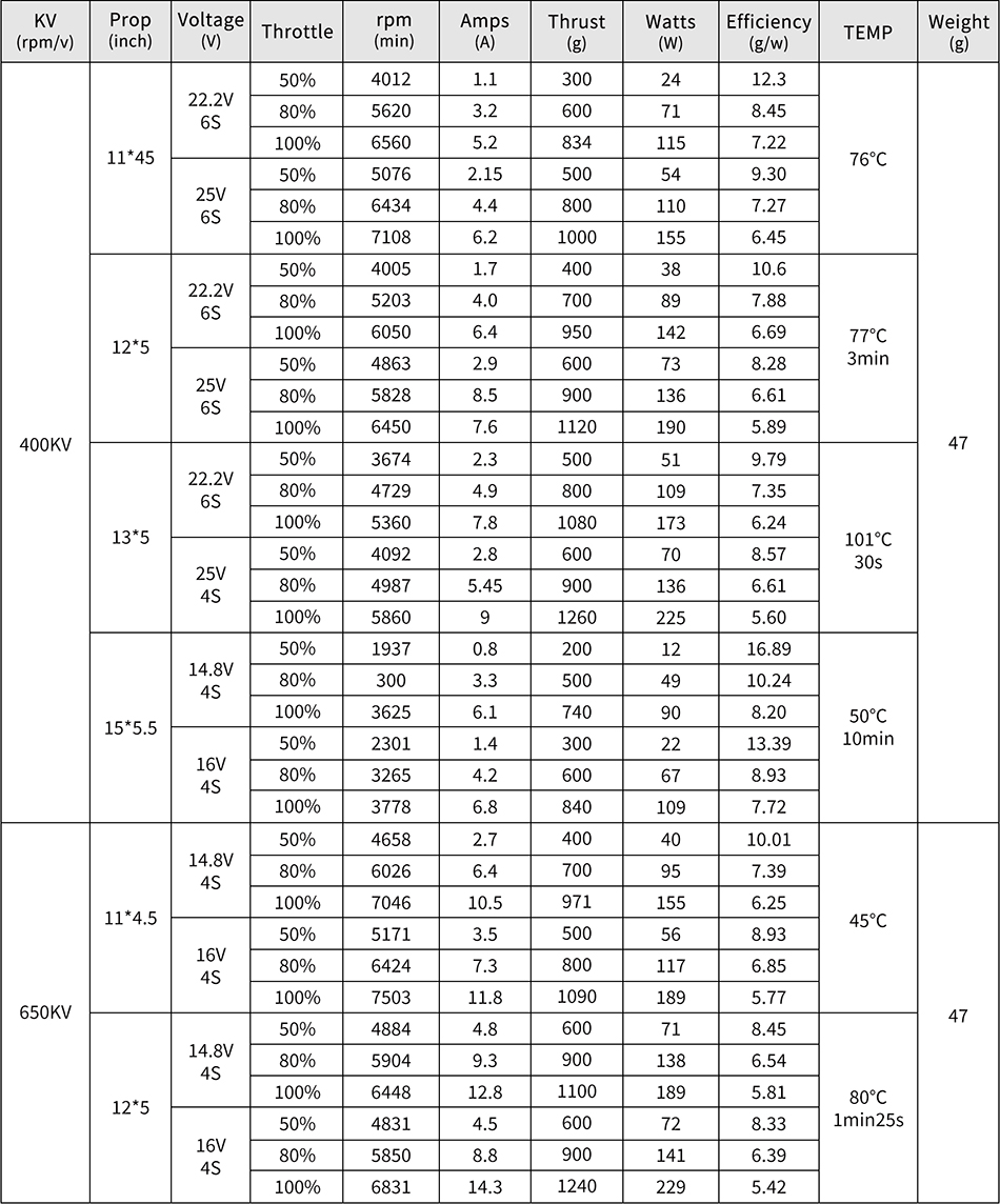 KV Value: 400KV (400 revolutions per minute at no-load corresponding to each volt of voltage)
