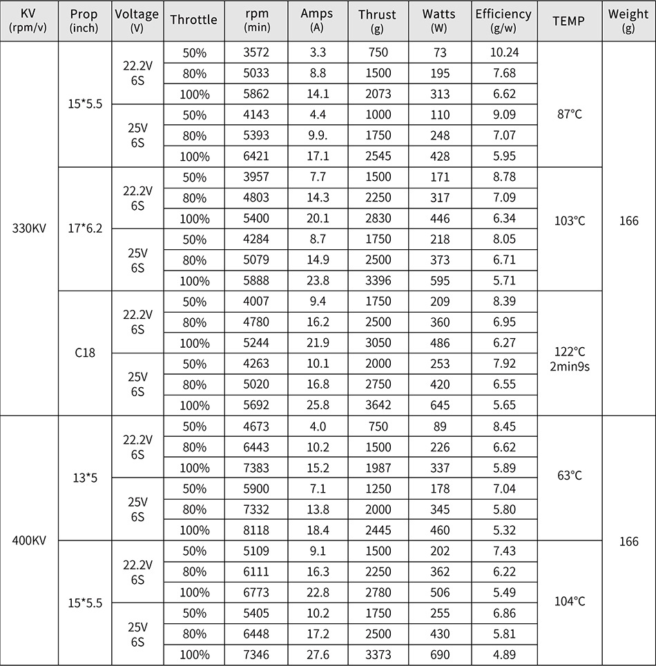 KV Value: 330KV (330 revolutions per minute at no-load corresponding to each volt of voltage)